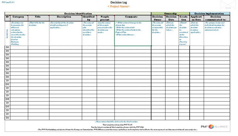 Use this fillable form as a sample or template according to the PM² Methodology's Guide. Each Artefact provides step by step instructions on how to use it and incorporate it in a project. Free, downloadable and easy to edit .xlsx file.